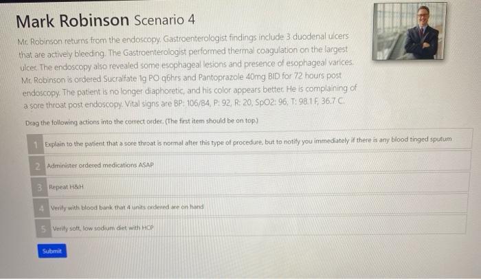 Solved Mark Robinson Scenario 1 While The Nurse Is Admitting Him To The Floor The Er Nurse Calls To Report An Hgb Hot 6 18 But The Lab Did Not Ha Course Hero